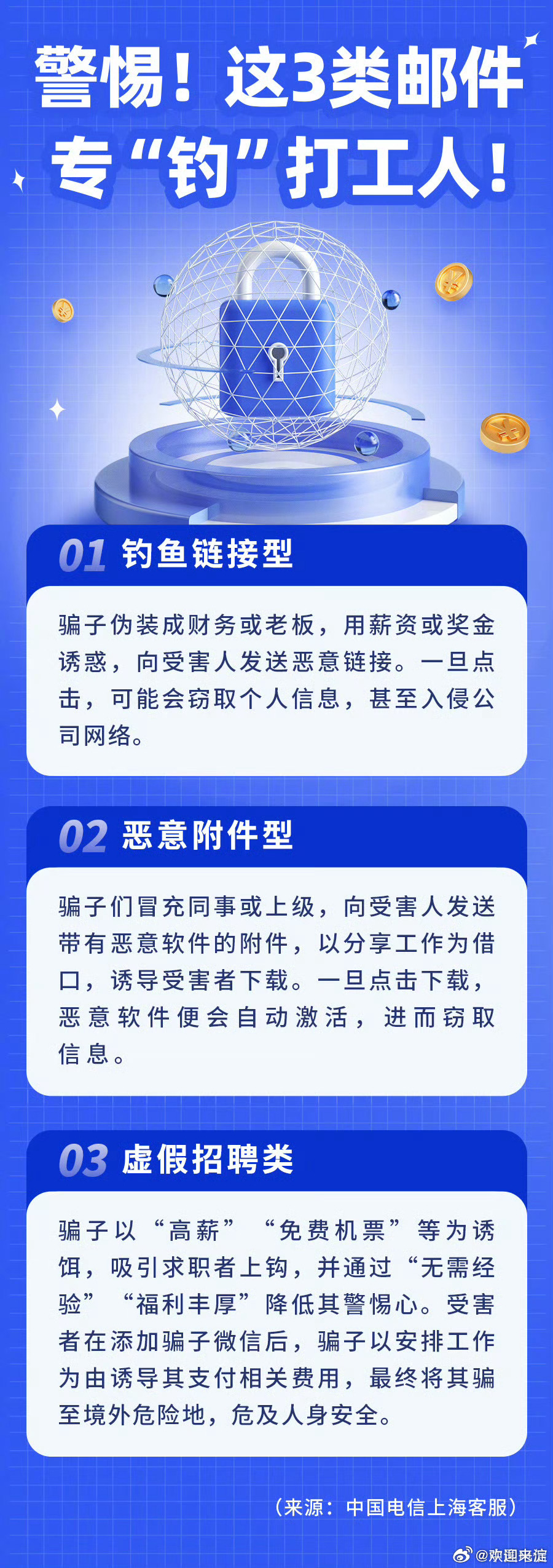 1、學(xué)會(huì)識(shí)別常見(jiàn)的釣魚(yú)郵件和短信特征。